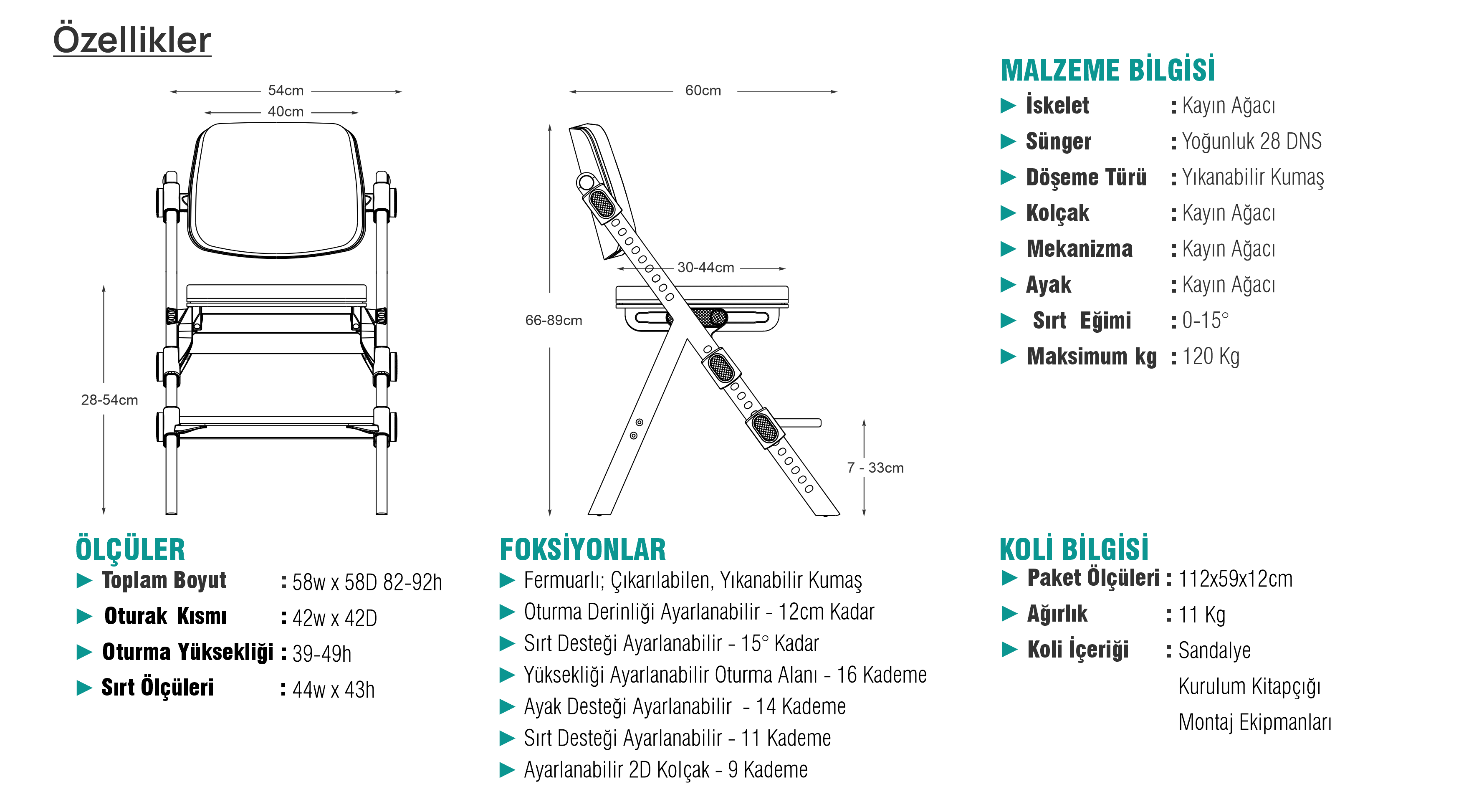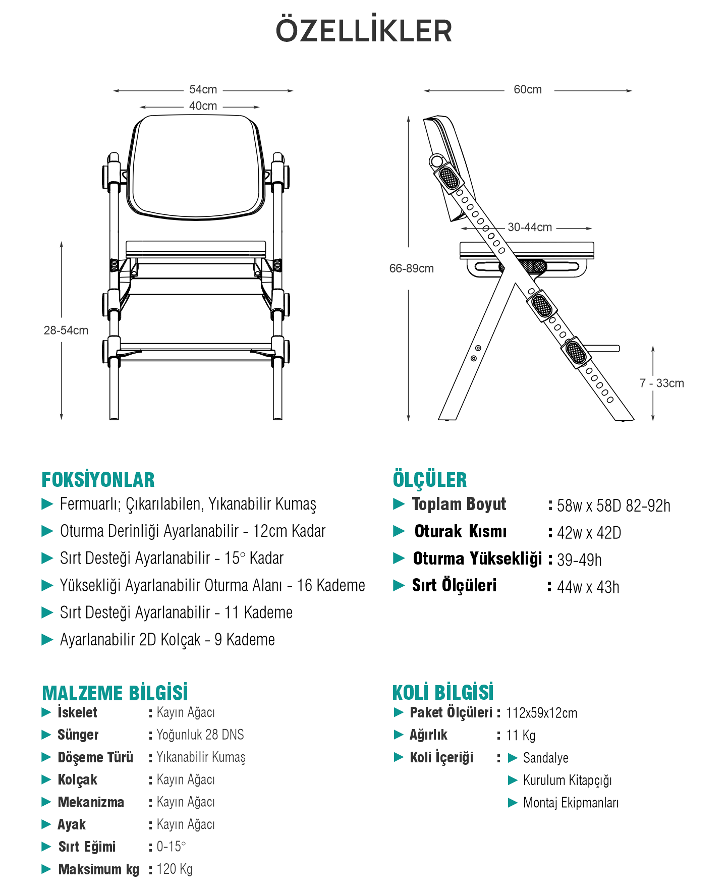 Cadiz, sırt yüksekliğinden oturma derinliğine, ayak desteğinden kolçağa kadar tüm bileşenleri ayrı ayrı ayarlanabilen bir sistemle tasarlanmıştır. Bu tasarımı sayesinde, her çocuğun farklı gelişim hızına ve beden yapısına uyum sağlayan, adaptif ergonomik destek sağlar. Ayrıca, kolçak ve ayak desteği gibi bileşenleri kullanmak istemediğiniz zamanlarda çıkartıp saklanabilir özelliktedir.