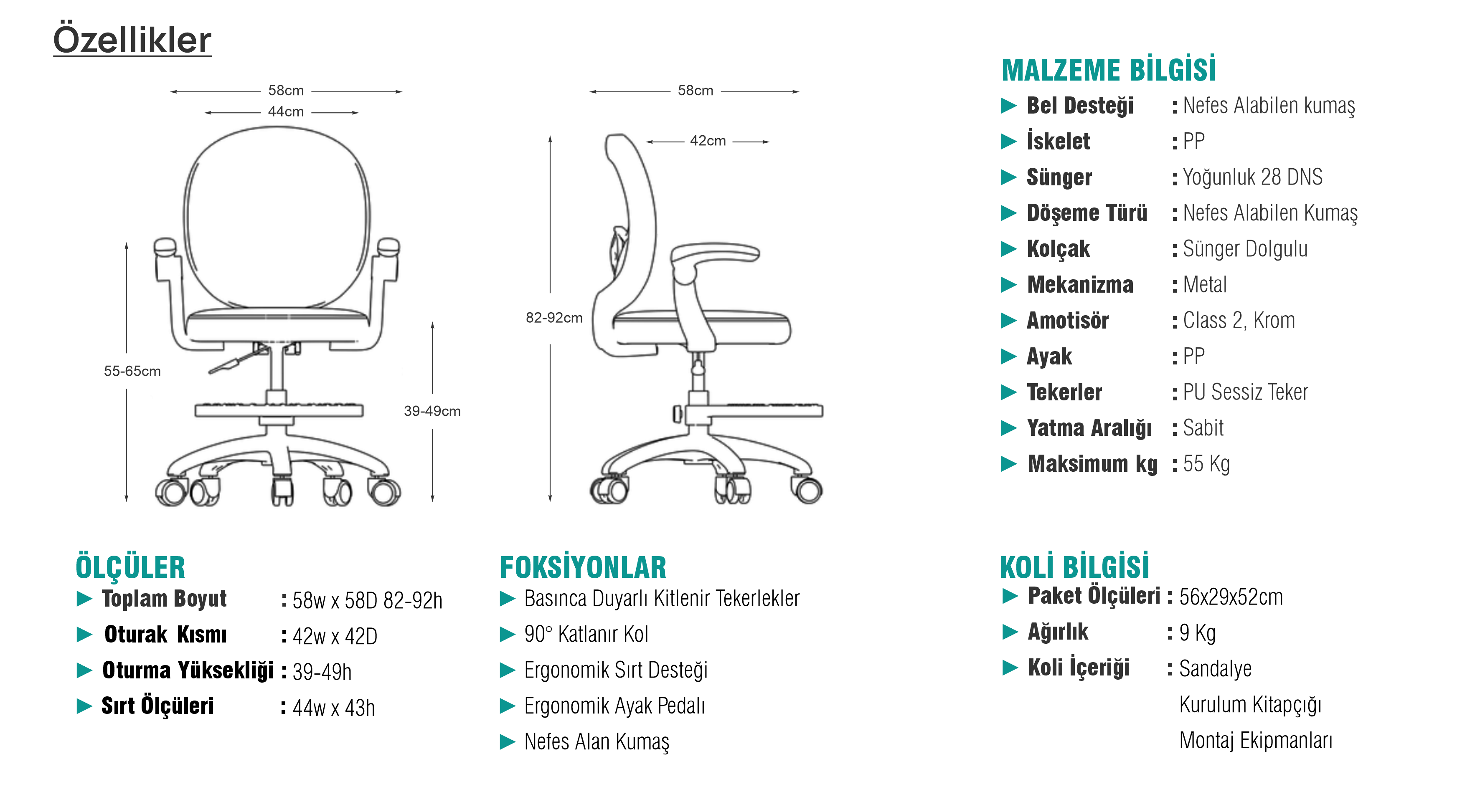 Vigo’nun 28 Dns yoğunluklu oturma süngeri, çocuklar için optimum sertlikte destek bir oturma deneyimi sunar. Uzun süreli kullanımlarda çökme yapmaz, kalça ergonomisini koruyarak sağlıklı oturuş pozisyonunu destekler.