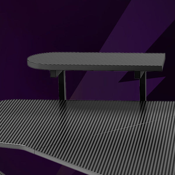 Masaya entegre edilen çok amaçlı ekipman rafları, hoparlör, router, koleksiyon figürleri gibi donanımları güvenli ve düzenli şekilde konumlandırmanızı sağlar. Bu raf yapısı, masa üzerindeki dağınıklığı azaltırken setup estetiğini de tamamlar.