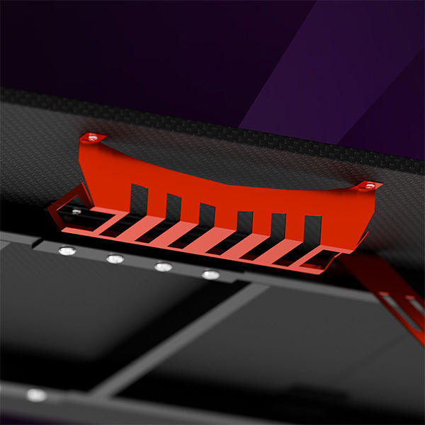 Vortex'in masa tablası, 25 mm kalınlığında, darbelere karşı dayanıklı gövde üzerine uygulanan karbon fiber dokulu kaplamayla güçlendirilmiştir. Mat ve hafif dokulu bu kaplama, ışık yansımalarını engellerken aynı zamanda profesyonel oyuncu setuplarına modern bir oyun atmosferi kazandırır. Vortex görsel kalite ve fiziksel dayanıklılığı aynı yüzeyde buluşturan premium bir masa çözümüdür.