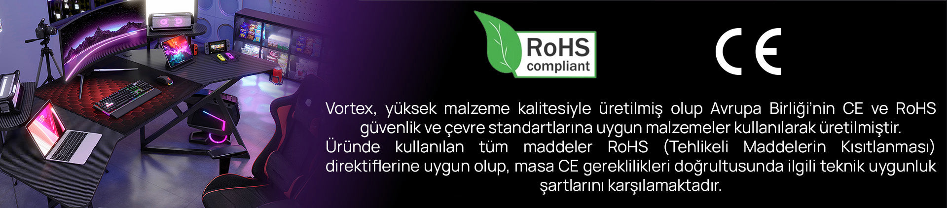 Vortex’in alt paneline entegre edilen kablo toplama sepeti, adaptör, uzatma kablosu ve çevre birimlerinin bağlantılarını güvenli şekilde organize etmenizi sağlar. Masanın altına gizlenmiş bu yapı, görsel karmaşayı ortadan kaldırırken, daha düzenli ve profesyonel bir oyun alanı oluşturmanıza yardımcı olur. Temiz bir setup, net bir odaklanma sağlar.